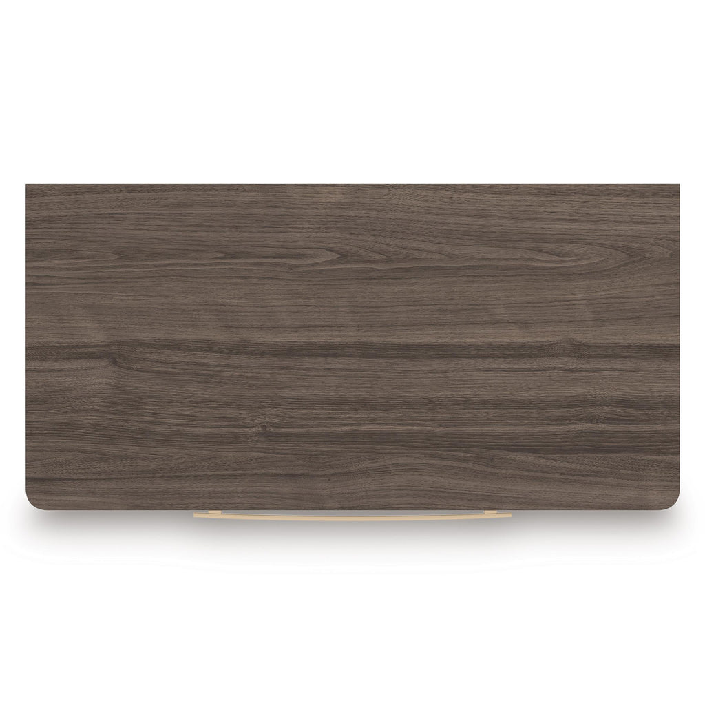 • Two-tone finish (dark brown finish over replicated walnut grain; matte white finish)
